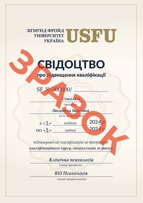● Свідоцтво про підвищення кваліфікації за спеціалізацією «Клінічна супервізія»;