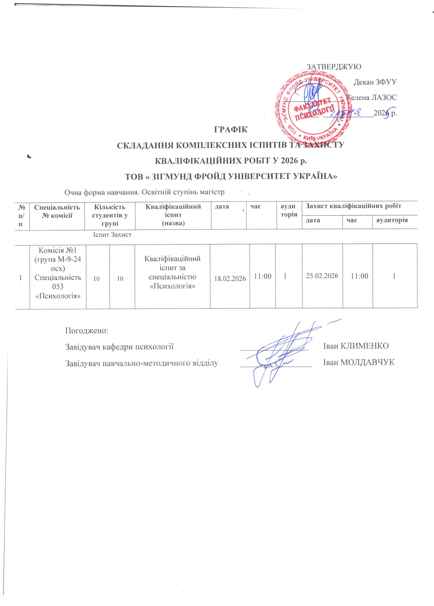 Розклад атестації Магістр